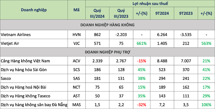 Nhờ sự tăng trưởng mạnh mẽ của lượng khách du lịch, cùng với thị trường hàng không sôi động trở lại, nhiều hãng hàng không và các công ty cung cấp hạ tầng, dịch vụ có liên quan ghi nhận kết quả kinh doanh tích cực trong quý III.
