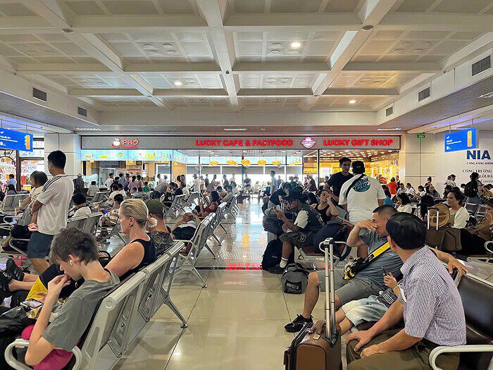 Hành khách ngồi chờ tại sân bay. (Ảnh: Lâm Anh).