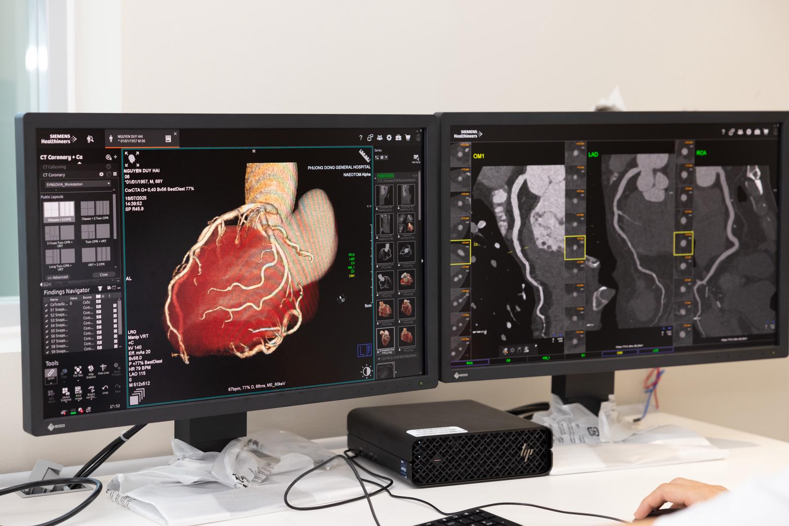 Trong lĩnh vực tim mạch, CT Photon giúp đánh giá chính xác tình trạng động mạch vành, đặc biệt hữu ích ở bệnh nhân đã đặt stent hoặc có thiết bị kim loại trong cơ thể, nhóm bệnh nhân trước đây thường bị hạn chế với CT truyền thống. Công nghệ này còn hỗ trợ phát hiện sớm mảng xơ vữa nguy cơ cao, giúp giảm bỏ sót tổn thương và nâng cao hiệu quả dự phòng biến cố tim mạch.