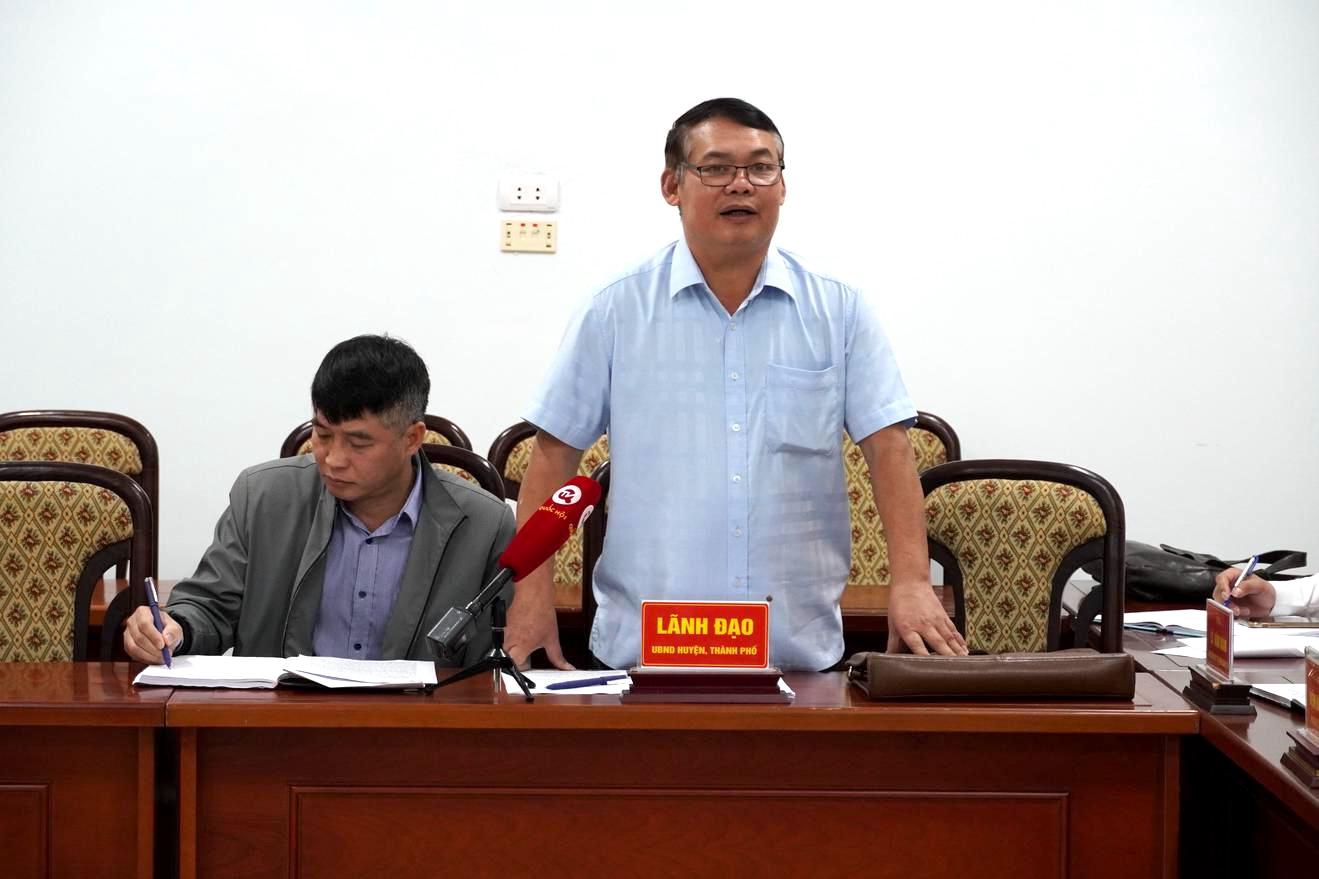 Chủ tịch UBND huyện Lạng Giang Nguyễn Văn Bằng (đang đứng) tại buổi tiếp công dân. Ảnh: Thanh Hoa