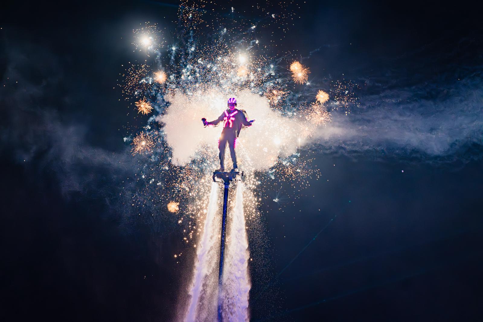 Mỗi vận động viên đều được trang bị trang phục đèn LED, được thiết kế bởi Beijing Bao Rong Baoyi Film and Television Culture Communication - đơn vị danh tiếng trong lĩnh vực thiết kế phục trang nghệ thuật, từng hợp tác với nhiều sự kiện mang tầm quốc tế, đồng thời là đối tác quen thuộc của những tên tuổi hàng đầu như đạo diễn Trương Nghệ Mưu. Trong “thiên hà ánh sáng”, những vận động viên chiêu đãi du khách những màn đua Jetski tốc độ cao kết hợp bắn pháo hoa, hay những màn nhào lộn điêu luyện ở độ cao 15m tạo nên những phân cảnh tựa phim bom tấn giữa biển trời đêm.