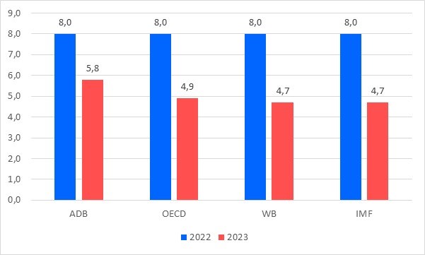 Đánh giá tăng trưởng Việt Nam của một số tổ chức quốc tế (Nguồn: ADB, OECD, WB và IMF) |