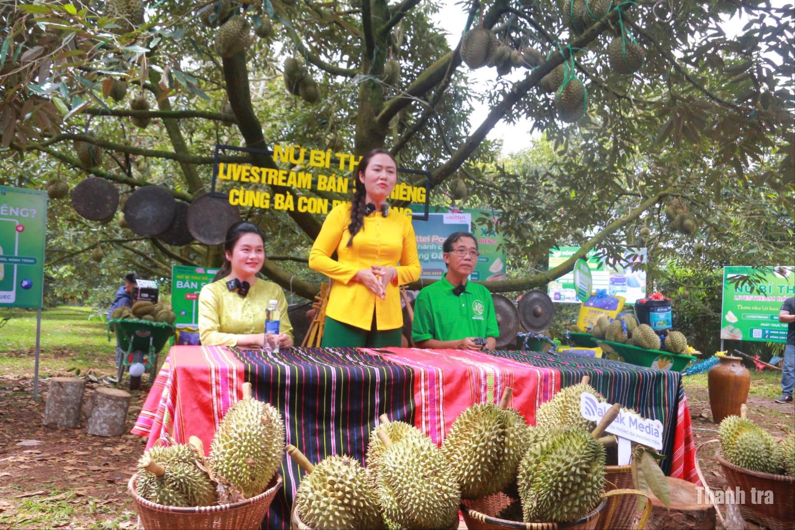 Chính quyền địa phương đồng hành cùng nông dân, quảng bá sầu riêng Đắk Lắk qua kênh livestream. Ảnh: NG