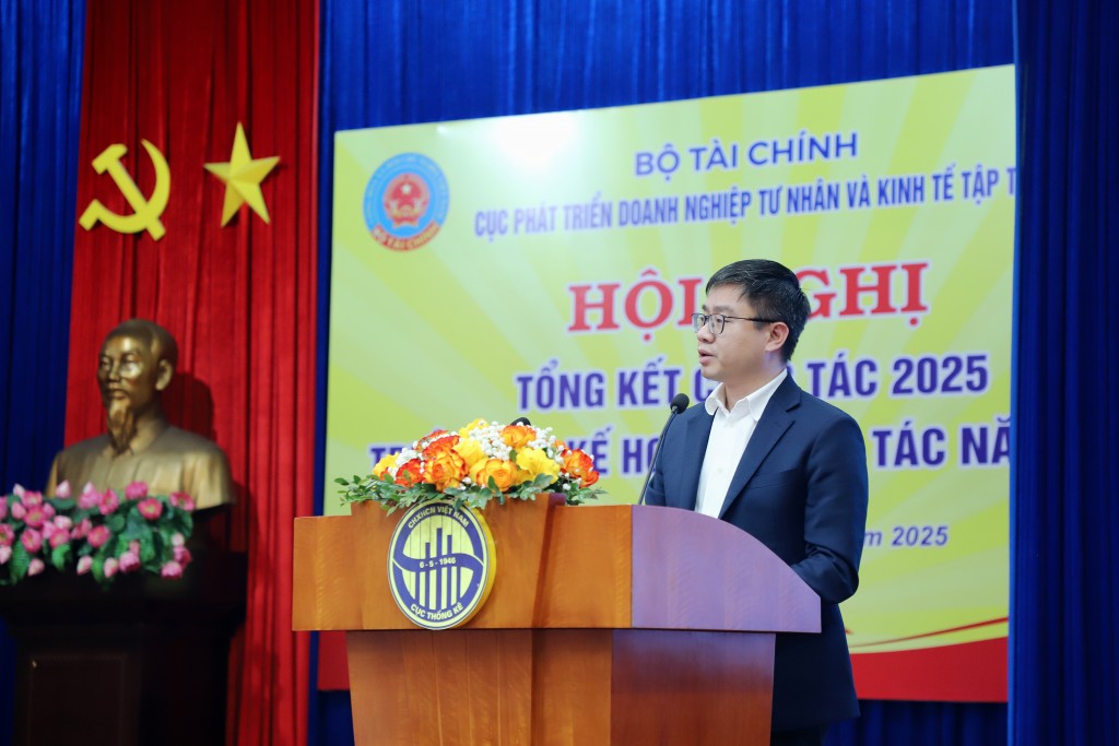 Báo cáo tại Hội nghị, ông Nguyễn Đức Trung, Phó Cục trưởng Cục Phát triển Doanh nghiệp tư nhân và kinh tế tập thể cho biết, năm 2025 có ý nghĩa đặc biệt khi ghi dấu những chuyển động quan trọng trong tư duy lãnh đạo, chỉ đạo, điều hành phát triển kinh tế. Những chuyển động này thể hiện rõ tinh thần đổi mới, quyết tâm cải cách và tạo đột phá của toàn hệ thống chính trị, nhất là trong lĩnh vực phát triển doanh nghiệp và kinh tế tư nhân.