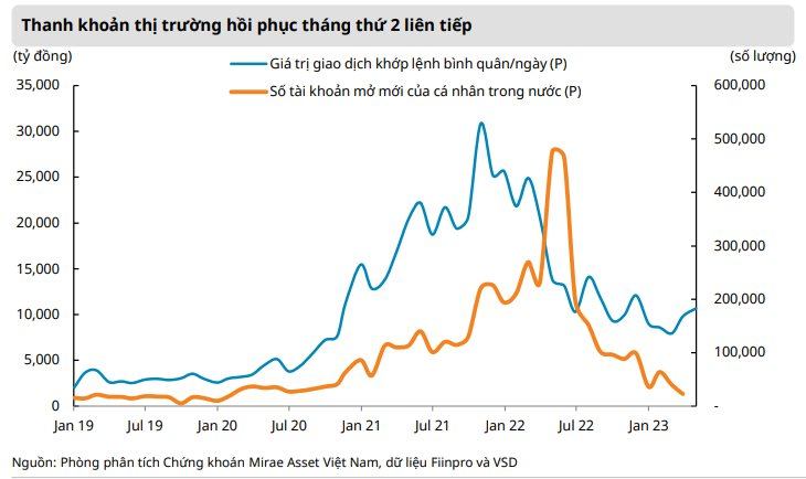 Theo Mirae Asset, thị trường chứng khoán Việt Nam tiếp tục xu hướng hồi phục nhờ các ngành nhạy cảm với lãi suất như chứng khoán tăng tốt hay nhóm xây dựng và vật liệu xây dựng tăng theo kỳ vọng thúc đẩy giải ngân đầu tư công. Cổ phiếu dầu khí cũng có sự bứt phá khi Quy hoạch điện 8 được phê duyệt và kỳ vọng vào tiến độ chuỗi dự án khí, điện Lô B Ô Môn có tiến triển. Cổ phiếu Bất động sản cũng phục hồi nhờ những nỗ lực không ngừng của Chính phủ mang lại hy vọng về “hạ cánh mềm” cho trái phiếu doanh nghiệp và tháo gỡ nút thắt pháp lý cho các nhà phát triển bất động sản.