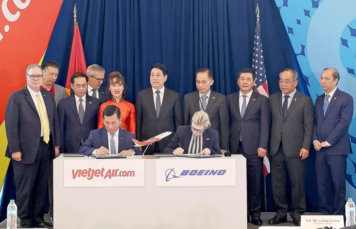 Chủ tịch nước chứng kiến lễ ký kết bàn giao máy bay giữa Boeing và Vietjet Air - Ảnh: TTXVN