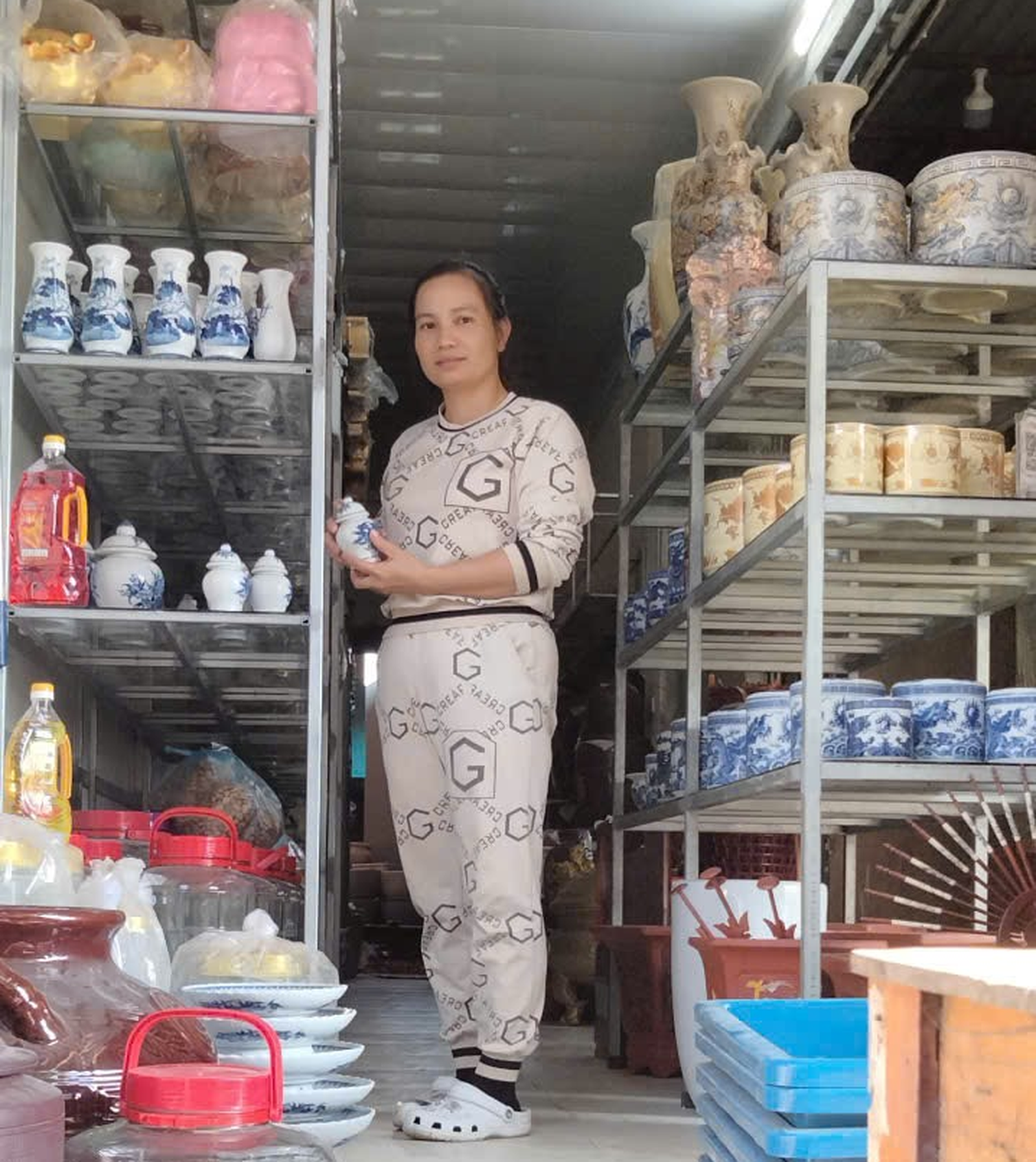 Tại thôn Hưng Đạo, chị Hà Thị Yến được vay 75 triệu đồng vào tháng 3/2024 từ chương trình cho vay giải quyết việc làm thông qua Hội Phụ nữ xã. Với nguồn vốn kịp thời, gia đình chị đầu tư mở rộng cửa hàng bán đồ gốm sứ chậu hoa.