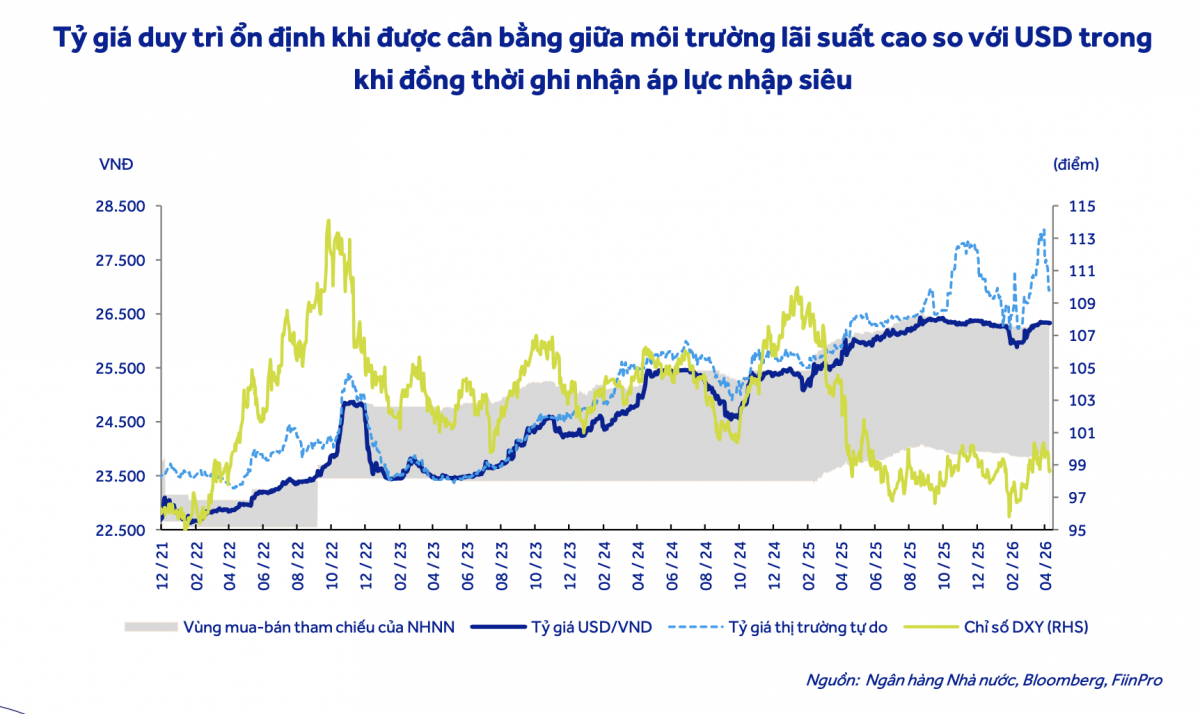 Nhìn lại diễn biến 3 tháng đầu năm, theo ACBS, mặt bằng lãi suất duy trì ở mức cao so với USD kết hợp với nguồn kiều hối dồi dào ở giai đoạn đầu năm được xem là những yếu tố giúp cân bằng tỷ giá trước áp lực nhập siêu 3,64 tỷ USD trong quý I/2026.