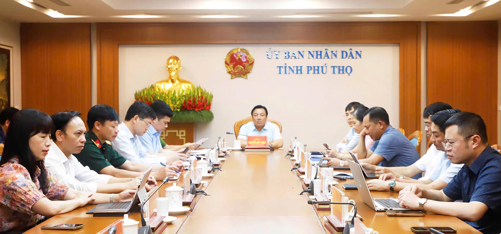Phó Chủ tịch UBND tỉnh Nguyễn Huy Ngọc chủ trì phiên họp lần thứ tư Ban Chỉ đạo Chính phủ về phát triển khoa học công nghệ, đổi mới sáng tạo, chuyển đổi số tại điểm cầu tỉnh Phú Thọ. Ảnh: Thanh Hòa
