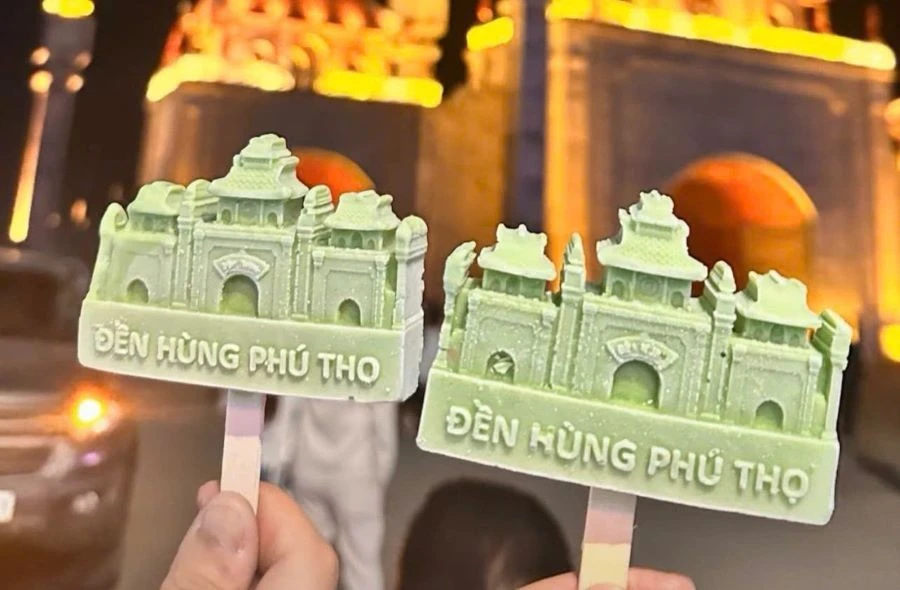 Đặc biệt, dịp Lễ hội Đền Hùng năm nay, nhiều người dân và du khách thích thú với những que kem “check-in” tạo hình chiếc cổng vào Trung tâm lễ hội Khu Di tích lịch sử Đền Hùng. Những chiếc kem này đã trở thành “hot trend” và tạo hiệu ứng lan tỏa trên mạng xã hội.