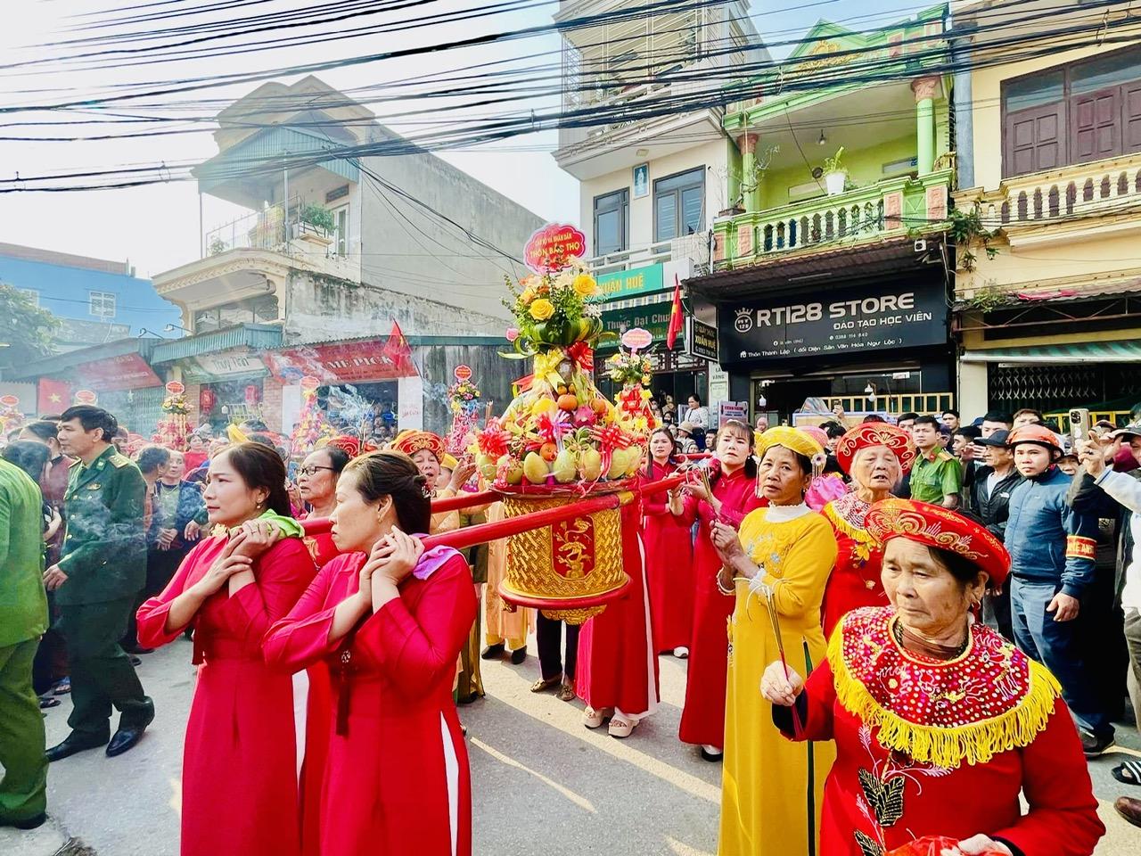 Nghi thức rước cỗ trong lễ hội Cầu Ngư năm 2025. Ảnh: Hương Trà