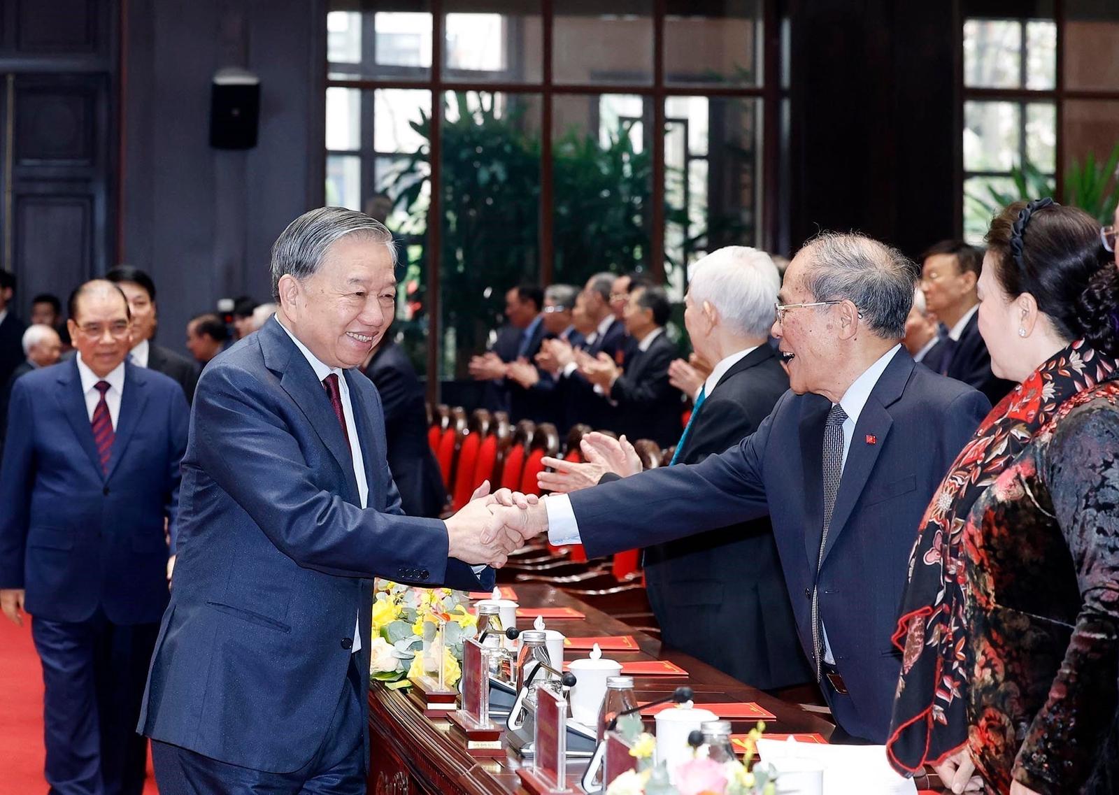 Tổng Bí thư Tô Lâm và các lãnh đạo, nguyên lãnh đạo Đảng, Nhà nước dự Lễ kỷ niệm 60 năm Ngày truyền thống ngành Nội chính Đảng. Ảnh: TTXVN