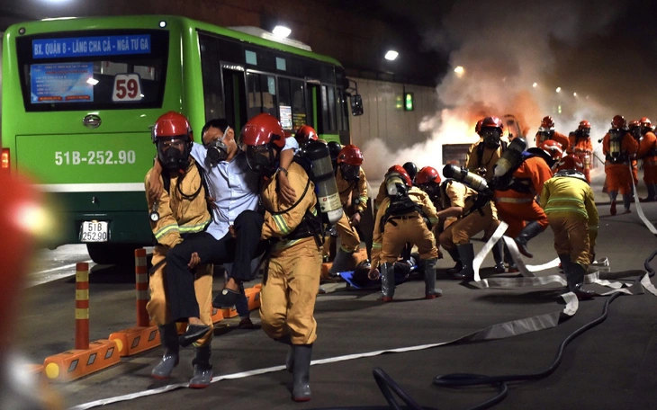 2 tuyến xe buýt qua hầm sông Sài Gòn tạm đổi đường để diễn tập chữa cháy