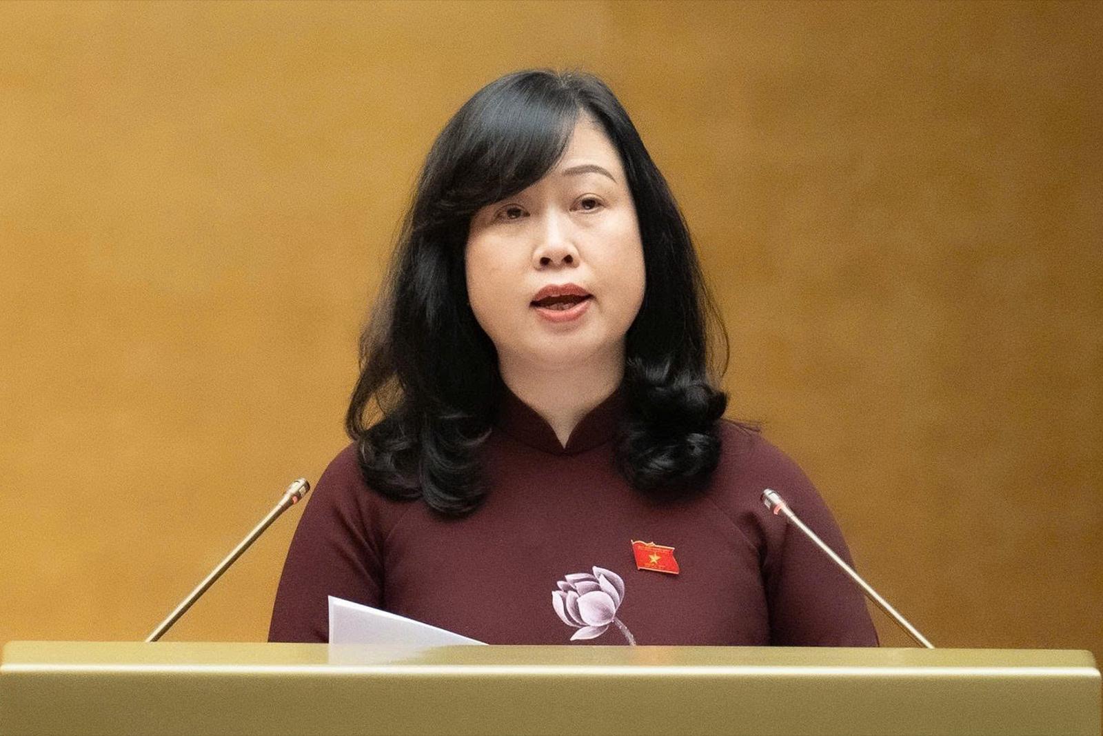 Bộ trưởng Bộ Y tế Đào Hồng Lan báo cáo giải trình trước khi Quốc hội biểu quyết. Ảnh: P.Thắng