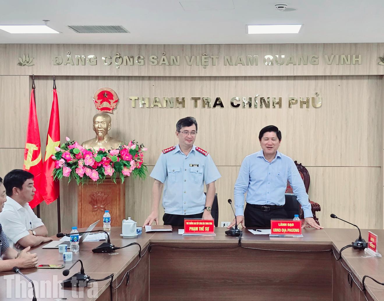 Ông Phạm Thế Sự, Phó Trưởng Ban Tiếp công dân Trung ương và ông Lê Văn Sử, Phó Chủ tịch UBND tỉnh Cà Mau, đồng chủ trì buổi làm việc. Ảnh: Lan Anh