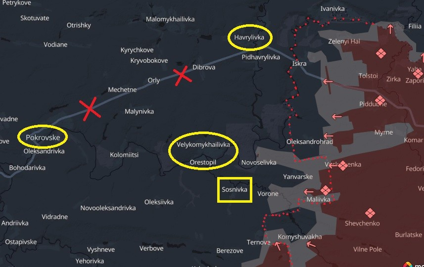 Sau đó, quân Nga cần phải tiếp tục tấn công sang phía tây, nhằm thiết lập hệ thống kiểm soát hỏa lực trên tuyến đường cao tốc Pokrovskoye-Gavrilovka (Pokrovske-Havrylivka), tiến tới cắt đứt hoàn toàn tuyến đường vận tải chiến lược cho các thành phố Ivanivka và Novopavlivka của Dnipropetrovsk.