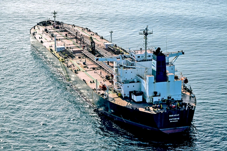 Bức không ảnh chụp vào ngày 1-10 ngoài khơi cảng Saint-Nazaire, phía tây Pháp, cho thấy tàu chở dầu Boracay - Ảnh: AFP