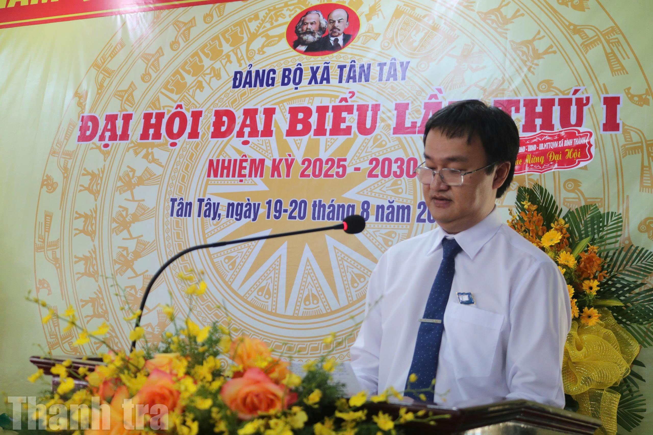 Phát biểu chỉ đạo Đại hội, Ủy viên Ban Thường vụ Tỉnh ủy, Chánh Thanh tra tỉnh Tây Ninh Phan Huỳnh Quốc Vinh thay mặt Ban Thường vụ Tỉnh ủy, ghi nhận và nhiệt liệt biểu dương tinh thần vượt khó, nỗ lực phấn đấu của toàn Đảng bộ, chính quyền và Nhân dân xã Tân Tây. Đồng thời đề nghị Đại hội nghiêm túc đánh giá, phân tích rõ nguyên nhân, nhất là nguyên nhân chủ quan; từ đó, đề ra các giải pháp khắc phục có hiệu quả những tồn tại, hạn chế được nêu trong báo cáo chính trị của Đảng ủy xã Tân Tây.
