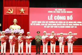 Công bố các quyết định của Giám đốc Công an tỉnh Tuyên Quang về việc bố trí 28 cán bộ giữ chức vụ trưởng các đơn vị cấp phòng; công bố quyết định về quy định tổ chức bộ máy và bố trí 124 cán bộ giữ chức vụ Trưởng Công an cấp xã.