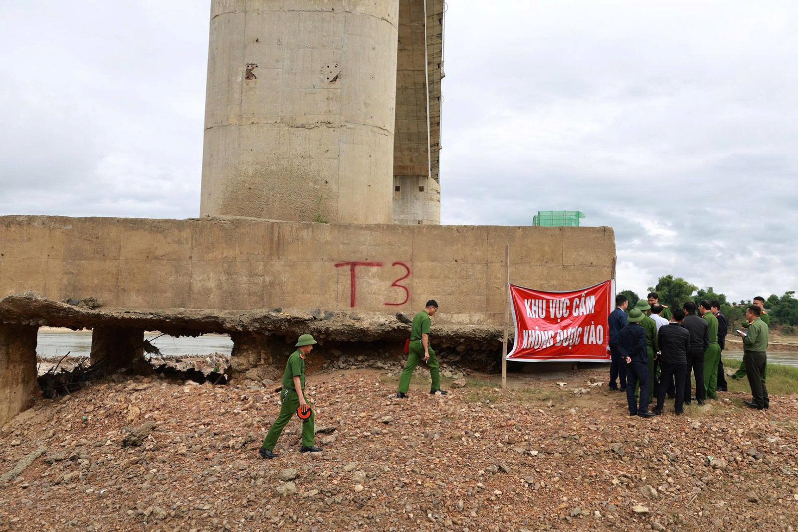 Cơ quan Cảnh sát điều tra phối hợp với các đơn vị liên quan khám nghiệm hiện trường tại trụ T3, cầu Sông Lô. Ảnh: Công an cung cấp