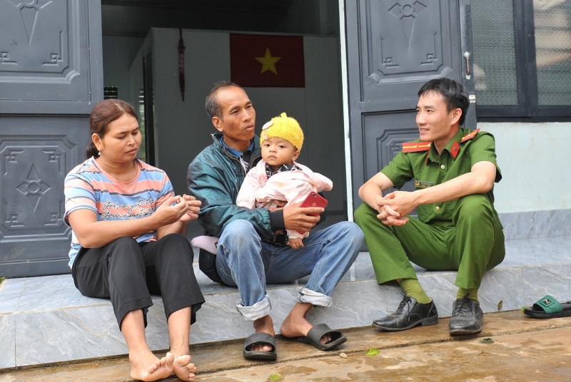 Vợ chồng anh Y Jư Niê (trú tại buôn Ea Tiêu, xã Ea Tiêu, huyện Cư Kuin) vui mừng khi được cùng con cháu sống trong căn nhà mới do Bộ Công an hỗ trợ xây dựng. Ảnh: VT
