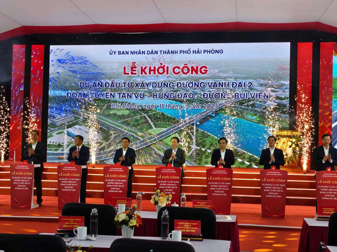 Sáng 11/3, UBND thành phố Hải Phòng tổ chức Lễ khởi công Dự án xây dựng đường vành đai 2 đoạn tuyến Tân Vũ- Hưng Đạo- Đường Bùi Viện.
