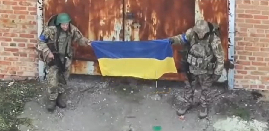 Theo ước tính của Quân đội Ukraine, 2 binh sĩ Nga cuối cùng bị tiêu diệt có nhiệm vụ dàn dựng một video có gắn cờ Nga nhằm mục đích cung cấp thông tin tuyên truyền.