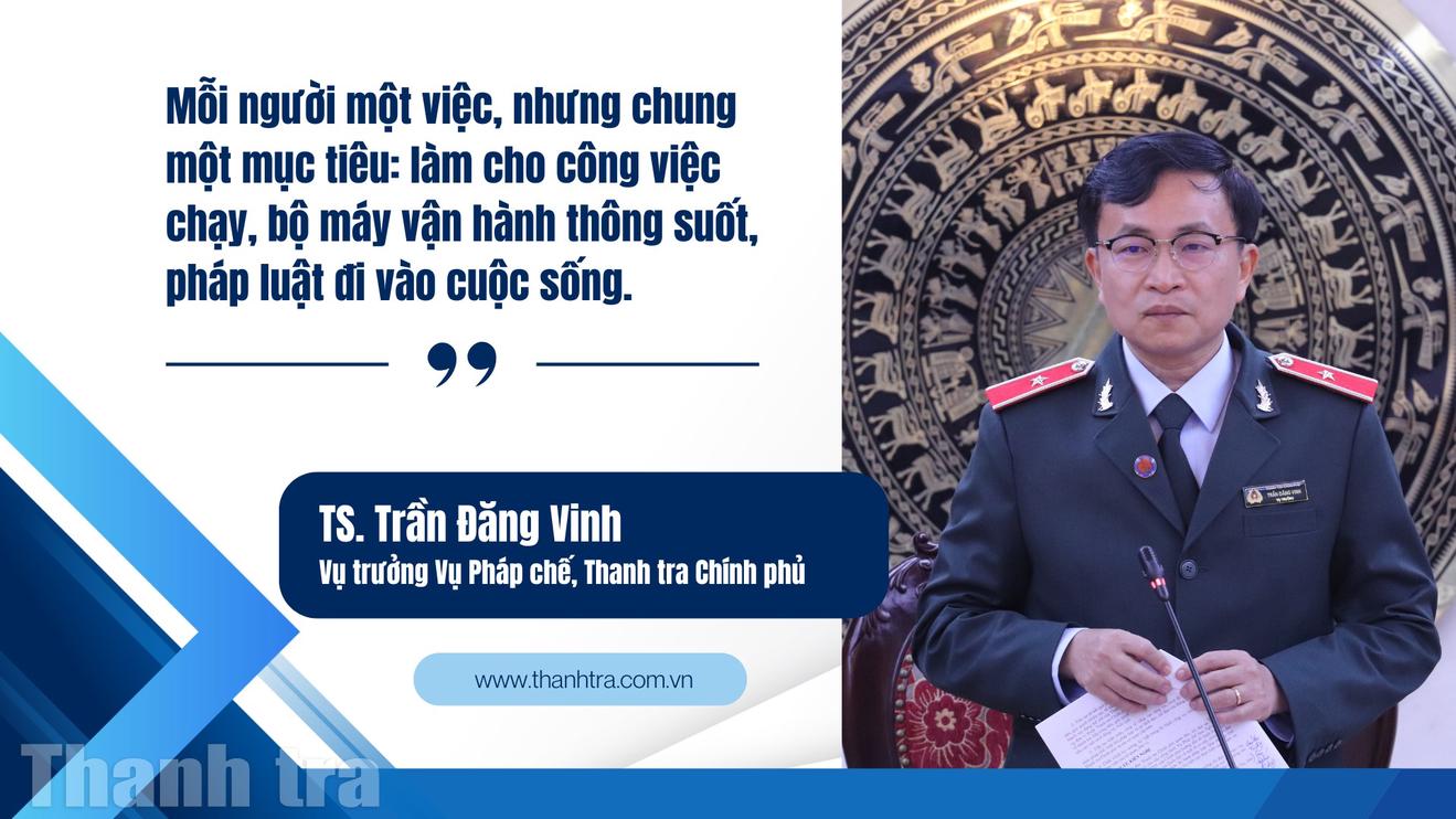 Theo ông Trần Đăng Vinh, Vụ trưởng Vụ Pháp chế, Thanh tra Chính phủ, năm 2025 là năm công tác pháp chế của ngành Thanh tra đối mặt yêu cầu “chưa từng có”: Vừa phải hoàn thiện hệ thống pháp luật, vừa phải bám sát tiến trình sắp xếp, tinh gọn bộ máy, đổi mới mô hình hoạt động và đáp ứng yêu cầu vận hành chính quyền địa phương hai cấp. Nhiều vấn đề mới, khó, nhạy cảm và chưa có tiền lệ đòi hỏi người làm pháp chế phải cân nhắc rất kỹ, đi sâu đến từng chi tiết, bởi chỉ một “độ lệch” nhỏ trong quy định cũng có thể tạo vướng mắc khi triển khai trong toàn hệ thống.