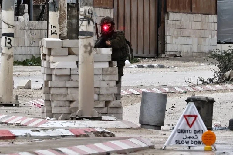| Một người lính Israel tại trại tị nạn Nur Shams gần Tulkarem ở Bờ Tây bị chiếm đóng. Ảnh: AFP. |