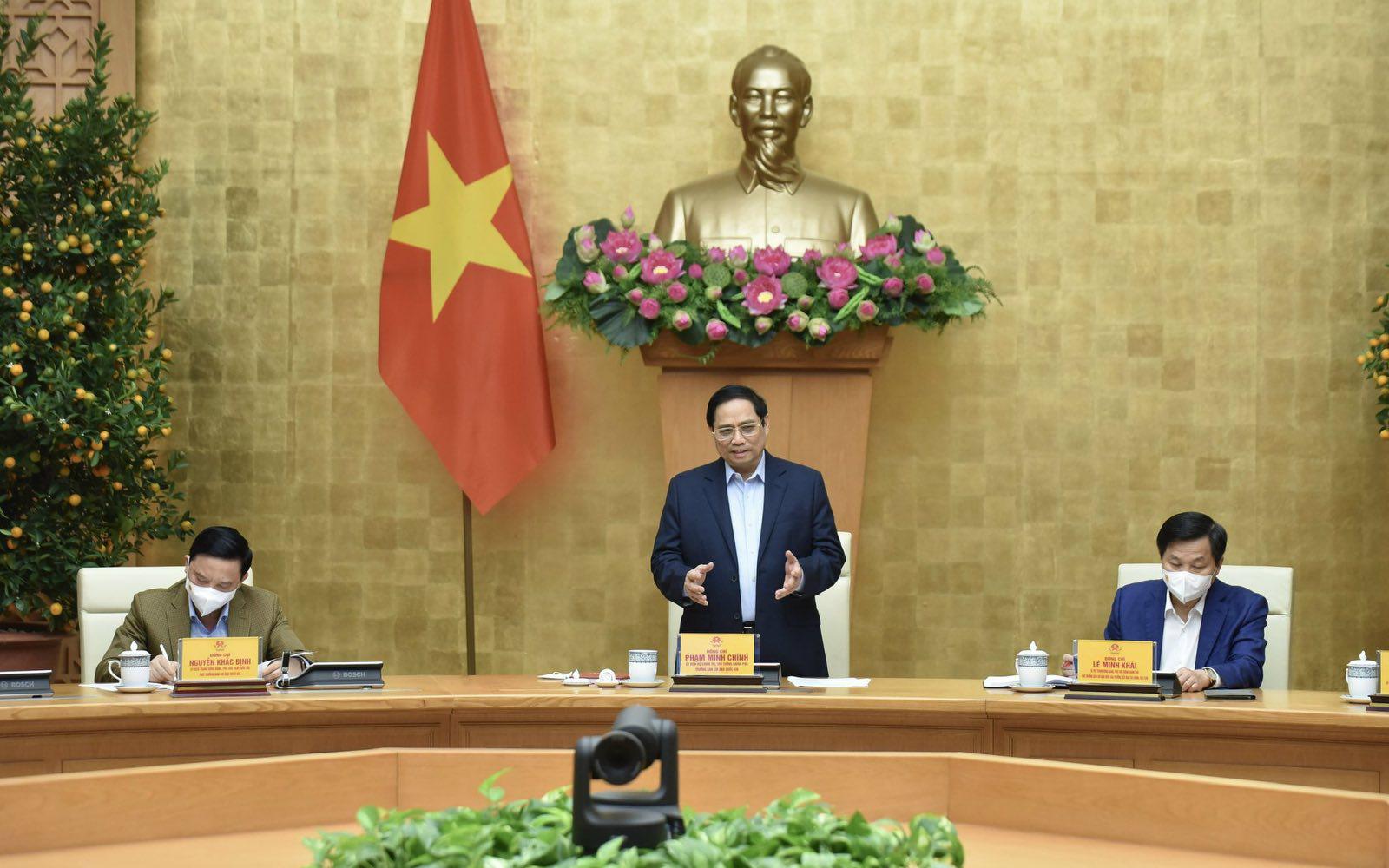 Thủ tướng yêu cầu khẩn trương hoàn thiện, trình Chính phủ ban hành Chương trình phòng, chống dịch; tiếp tục nghiên cứu, bổ sung, hoàn thiện các nguyên lý, phương châm, công thức phòng chống dịch. Đặc biệt, tổ chức hiệu quả chiến dịch tiêm chủng vaccine mùa xuân năm 2022 theo tinh thần "thần tốc, thần tốc hơn nữa". Thực tiễn cho thấy những nơi đã bao phủ đủ 3 mũi thì cơ bản rất an toàn, số ca chuyển nặng, tử vong chủ yếu là người chưa tiêm vaccine, người già, có bệnh nền. Thủ tướng lưu ý phải nghiên cứu, chuẩn bị kỹ lưỡng, bài bản, thận trọng trong việc tiêm vaccine cho trẻ em từ 5-11 tuổi.