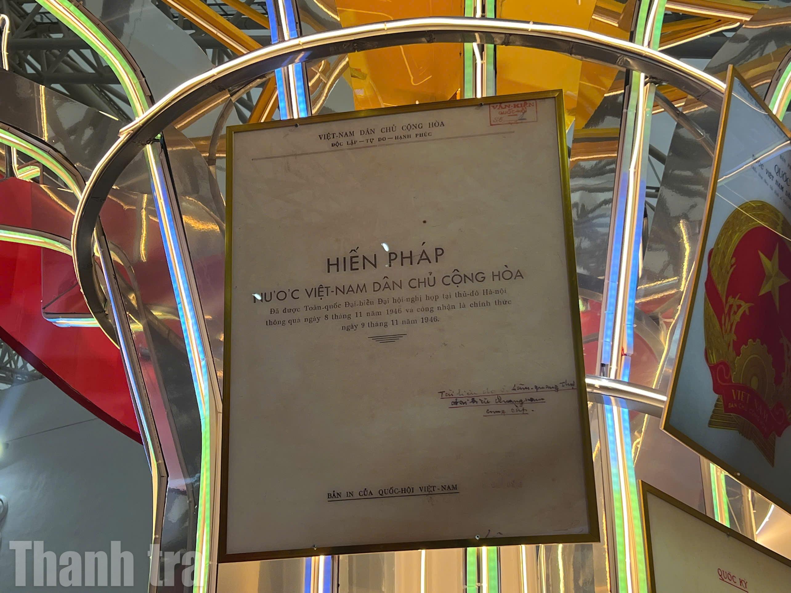 Bản Hiến pháp đầu tiên được trưng bày tại gian hàng Bộ Nội vụ. Ảnh: B.S