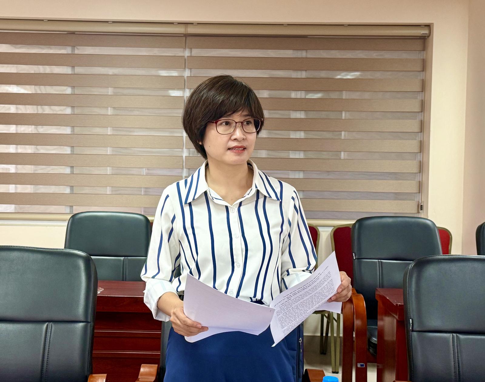 TS Phạm Thị Huệ, Trưởng Khoa Nghiệp vụ Thanh tra, Trường Cán bộ Thanh tra trình bày đề cương nghiên cứu. Ảnh: TH