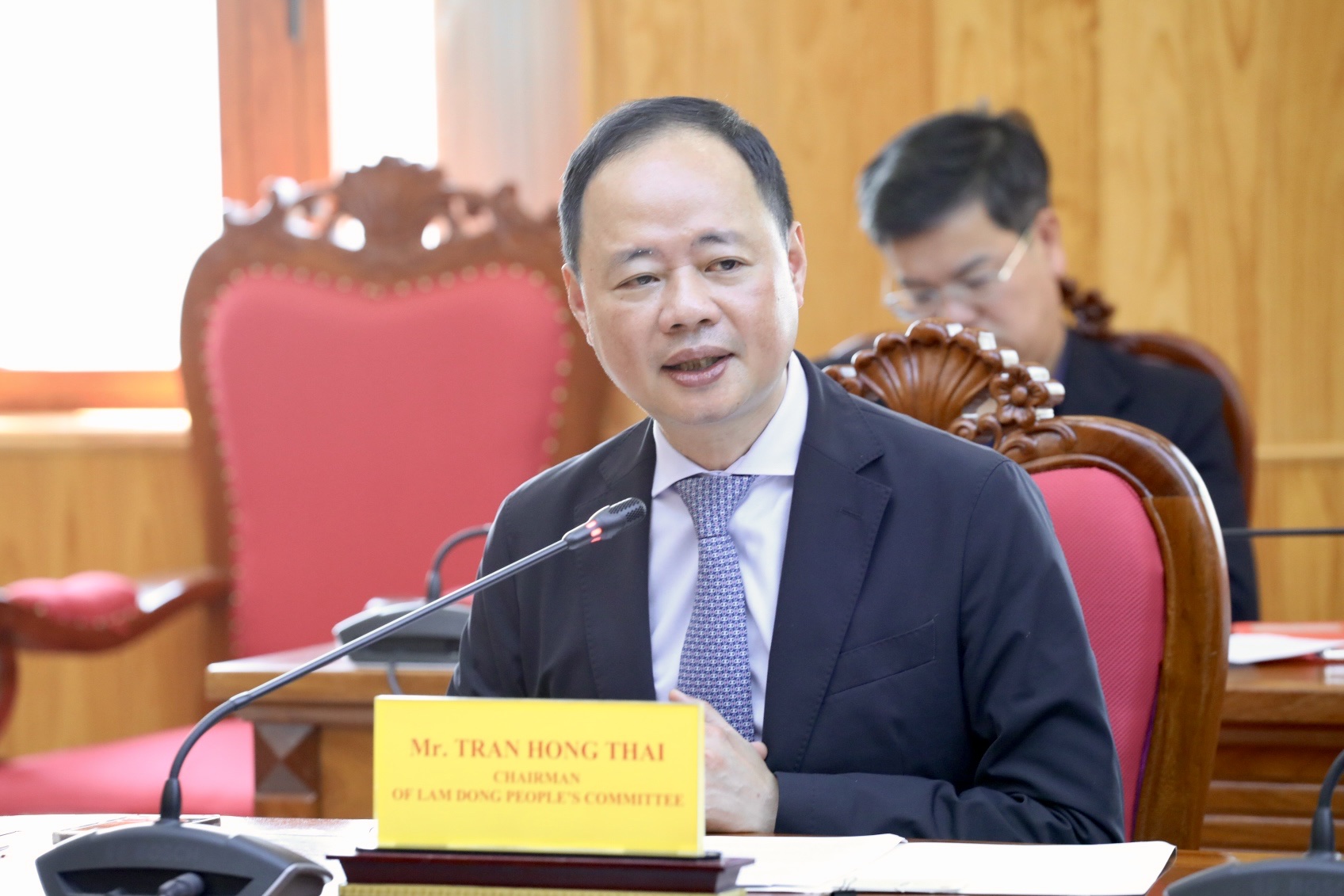 Chủ tịch UBND tỉnh Lâm Đồng Trần Hồng Thái phát biểu tại buổi làm việc. Ảnh: Vũ Linh