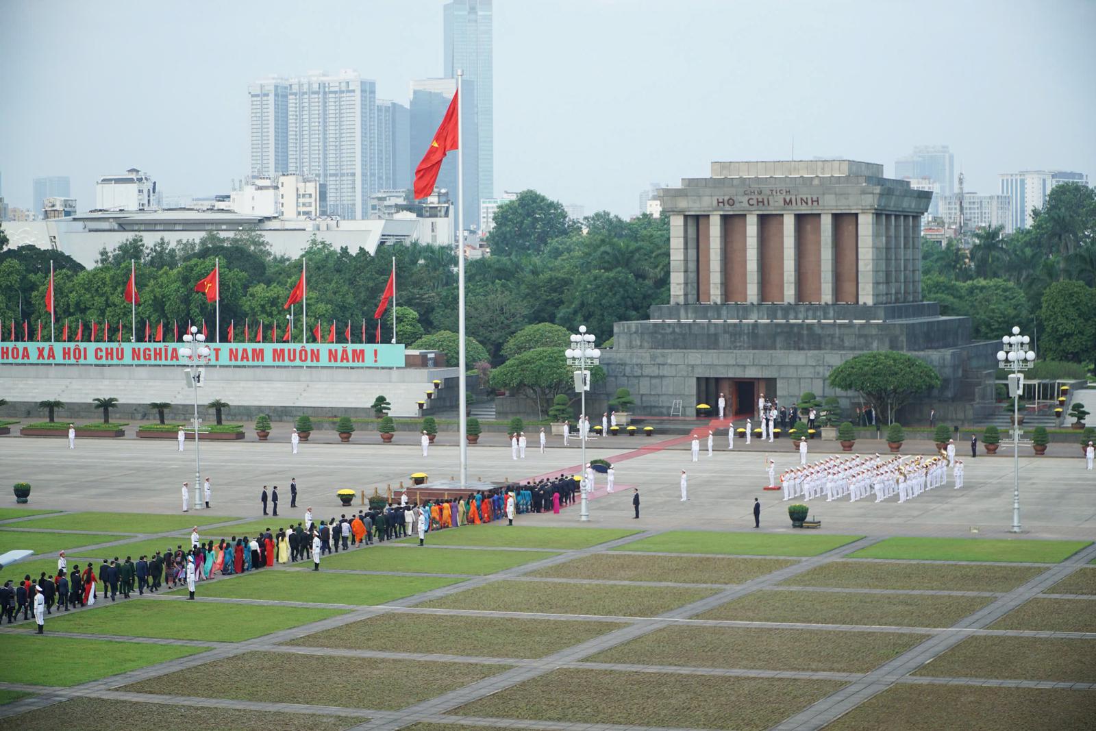 Đoàn xuất phát từ Nhà Quốc hội, vào Lăng viếng Chủ tịch Hồ Chí Minh. Ảnh: P.Thắng
