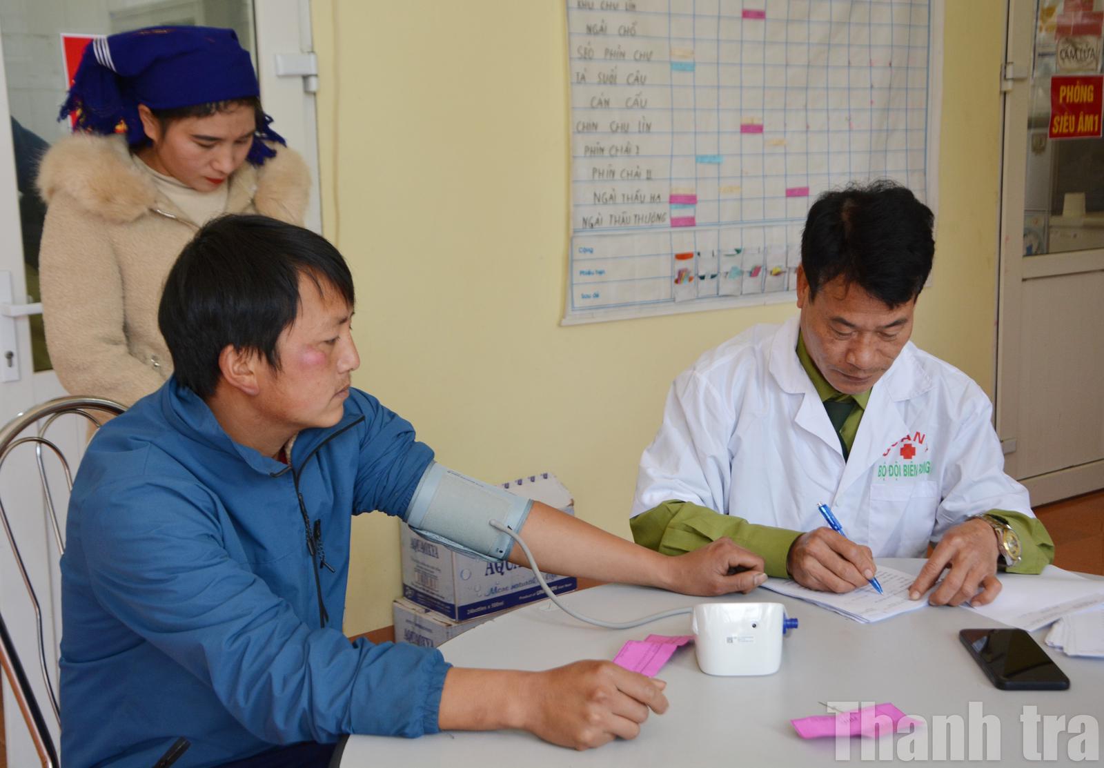 Chiến sĩ quân y bộ đội biên phòng tỉnh khám chữa bệnh trong chương trình “Xuân Biên phòng ấm lòng dân bản” năm 2025 tại xã A Lù, Bát Xát (trước sáp nhập). Ảnh: Bình Yên