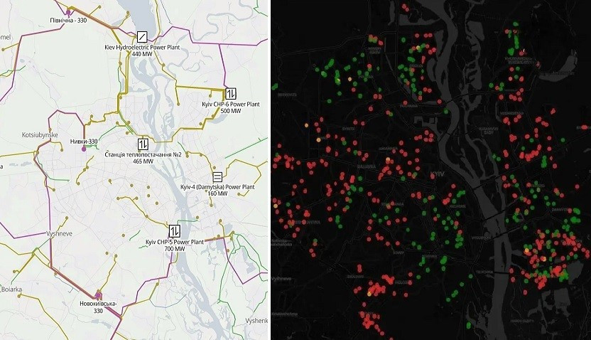 Một bản đồ về tình trạng mất điện ở Kiev sau cuộc tấn công phối hợp của Lực lượng Vũ trang Nga vào đêm ngày 24 tháng 01 cũng đã được ghi nhận và nó cho thấy, mặc dù không phải tất cả người tiêu dùng đều bị cắt điện, nhưng thiệt hại đáng kể đã xảy ra, phần lớn người dân ở thủ đô của Ukraine đã bị ảnh hưởng bởi sự cố mất điện.