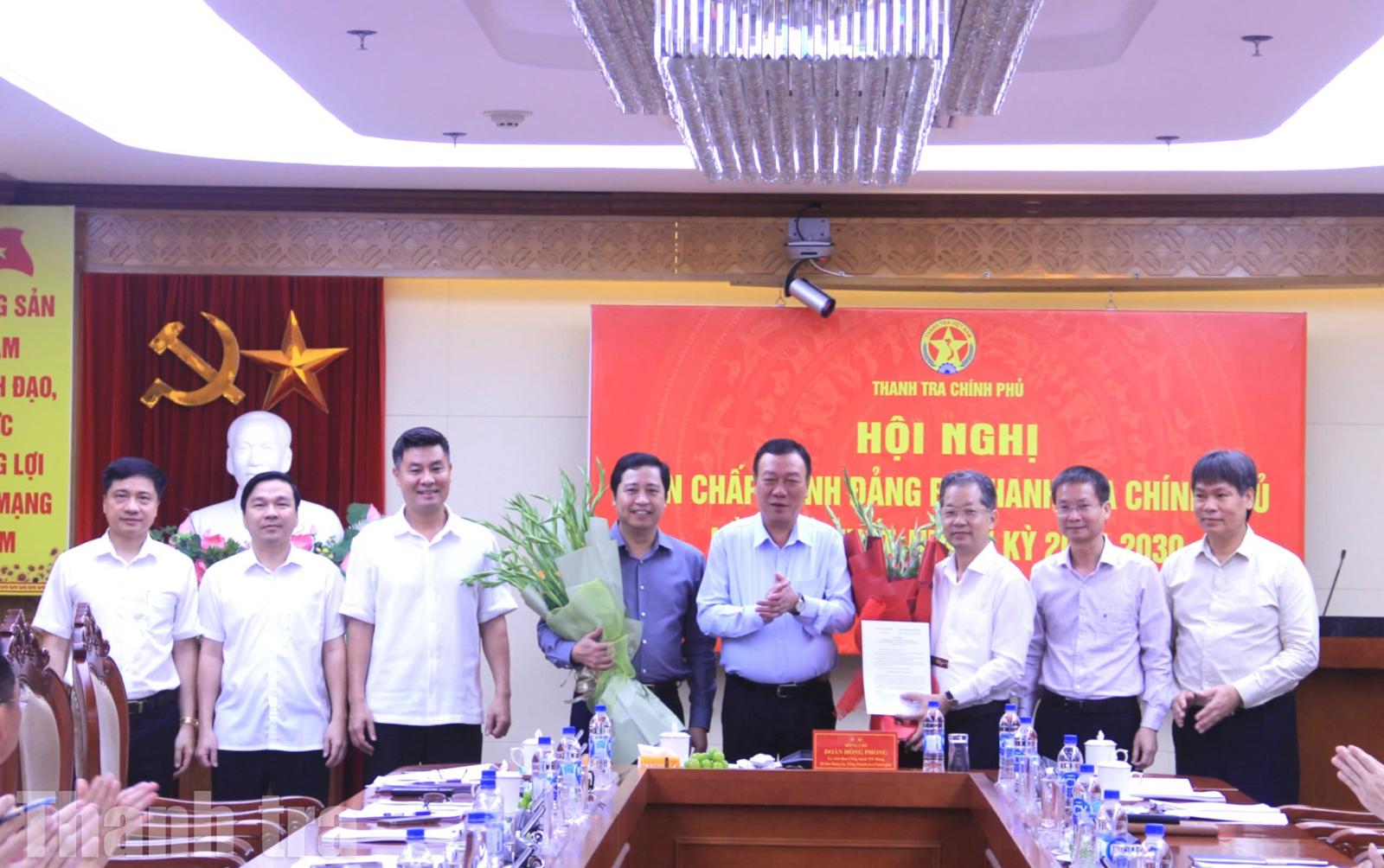 Tập thể Ban Thường vụ Đảng uỷ Thanh tra Chính phủ chúc mừng ông Nguyễn Văn Quảng. Ảnh: PV