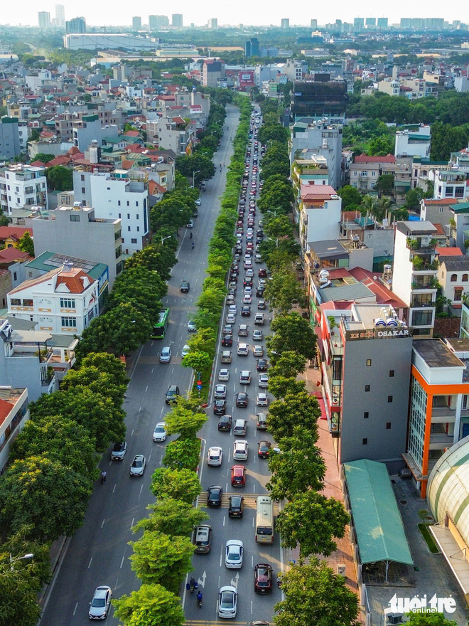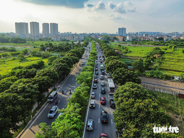 Dòng xe cộ nhích qua điểm nghẽn đường Cổ Linh (Long Biên) nối từ cao tốc Hà Nội - Hải Phòng vào trung tâm thành phố, trong dịp nghỉ lễ - Ảnh: HỒNG QUANG