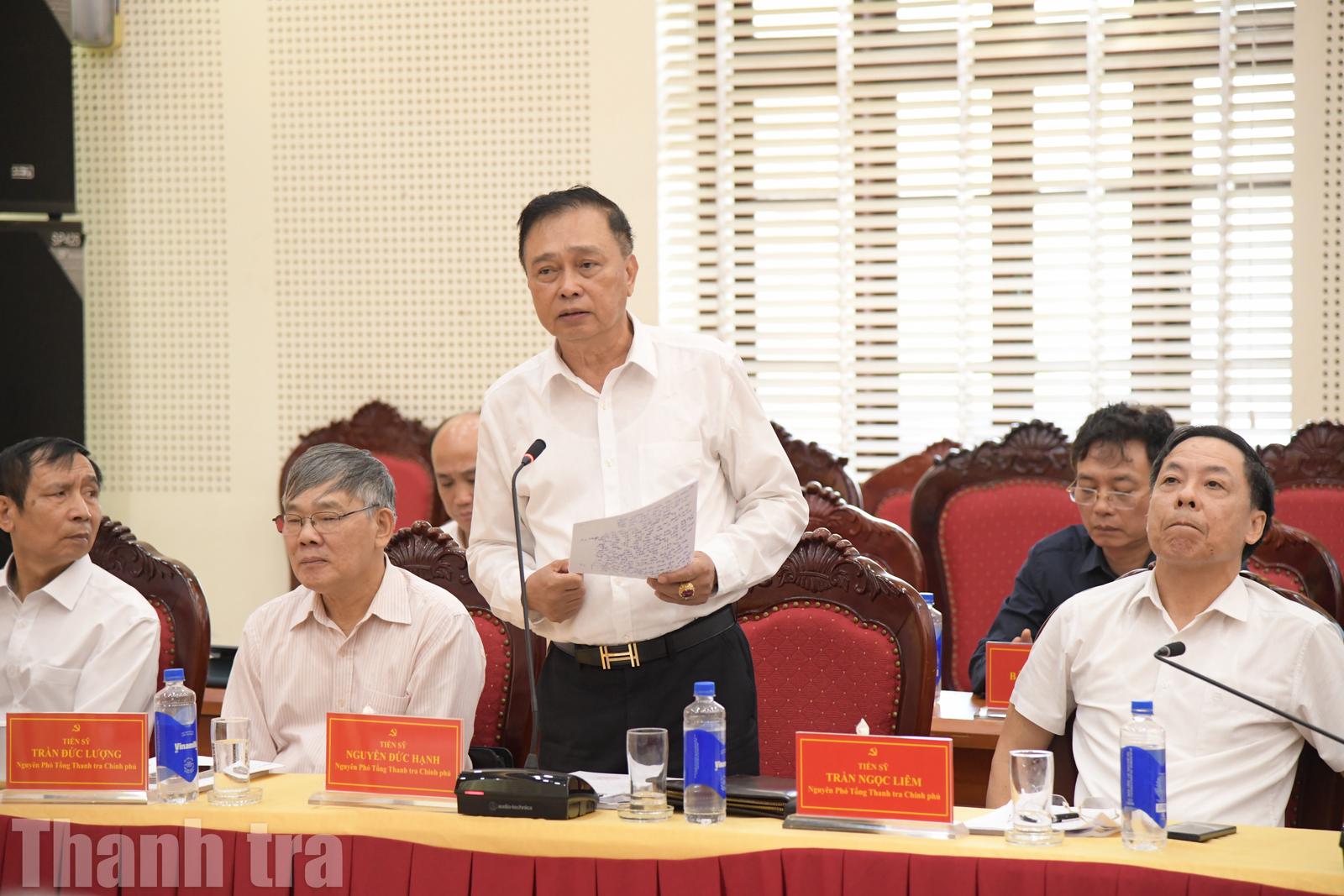 Cùng chung quan điểm về yêu cầu đổi mới hoạt động thanh tra, nguyên Phó Tổng Thanh tra Chính phủ Trần Đức Lượng tiếp tục đóng góp nhiều ý kiến nhằm hoàn thiện dự thảo đề án theo hướng toàn diện và phù hợp hơn với thực tiễn.