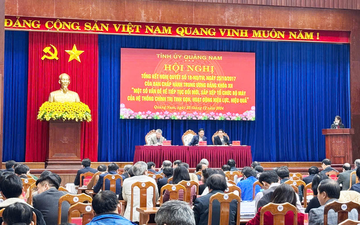 Sáng 25-12, Tỉnh ủy Quảng Nam tổ chức hội nghị tổng kết nghị quyết số 18 (năm 2017) của Ban Chấp hành Trung ương Đảng khóa XII về một số vấn đề tiếp tục đổi mới, sắp xếp tổ chức bộ máy của hệ thống chính trị tinh gọn, hoạt động hiệu lực, hiệu quả.