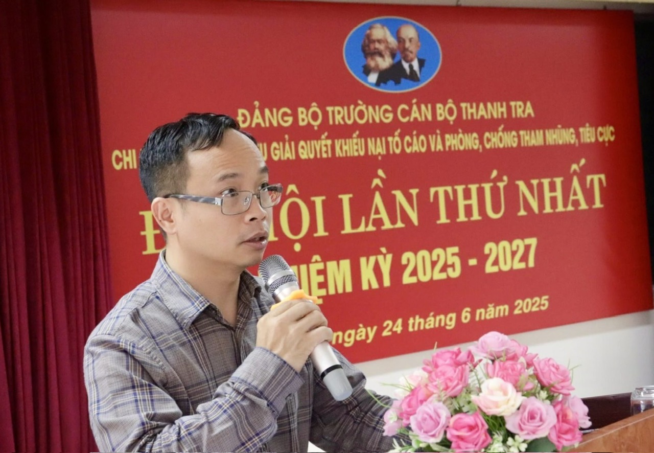 Tại Đại hội, Đảng ủy Trường Cán bộ thanh tra đã công bố Quyết định của Đảng ủy Trường Cán bộ thanh tra chỉ định cấp ủy Chi bộ nhiệm kỳ 2025 – 2027.