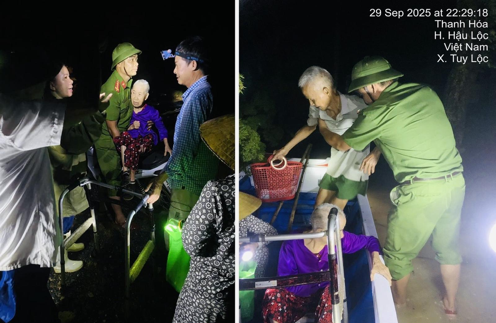 Ngày 30/9, thông tin từ Công an tỉnh Thanh Hoá cho biết, trên địa bàn tỉnh có 9.430 hộ với 45.000 nhân khẩu bị cô lập. Giám đốc Công an tỉnh Thanh Hoá đã chỉ đạo các đơn vị, lực lượng Công an trong tỉnh tập trung tối đa mọi điều kiện để hỗ trợ Nhân dân ở các địa bàn xung yếu, ngập lụt sơ tán đến nơi an toàn.