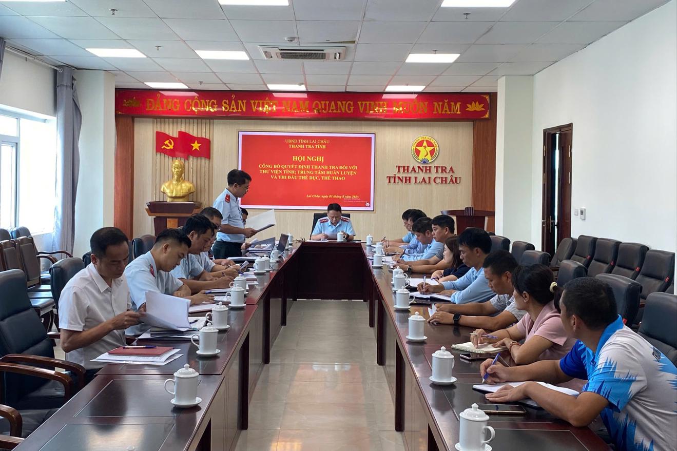 Hội nghị công bố quyết định thanh tra đối với Thư viện tỉnh và Trung tâm huấn luyện và thi đấu thể dục, thể thao. Ảnh: Thanh tra Lai Châu
