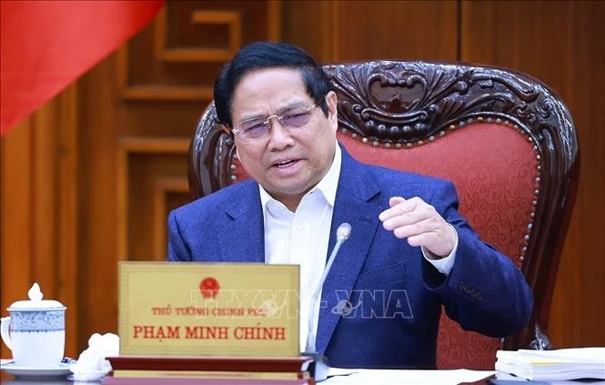 Thủ tướng Phạm Minh Chính chủ trì Phiên họp lần thứ hai về sắp xếp, tinh gọn bộ máy của Chính phủ. (Ảnh: Dương Giang/TTXVN ) |
