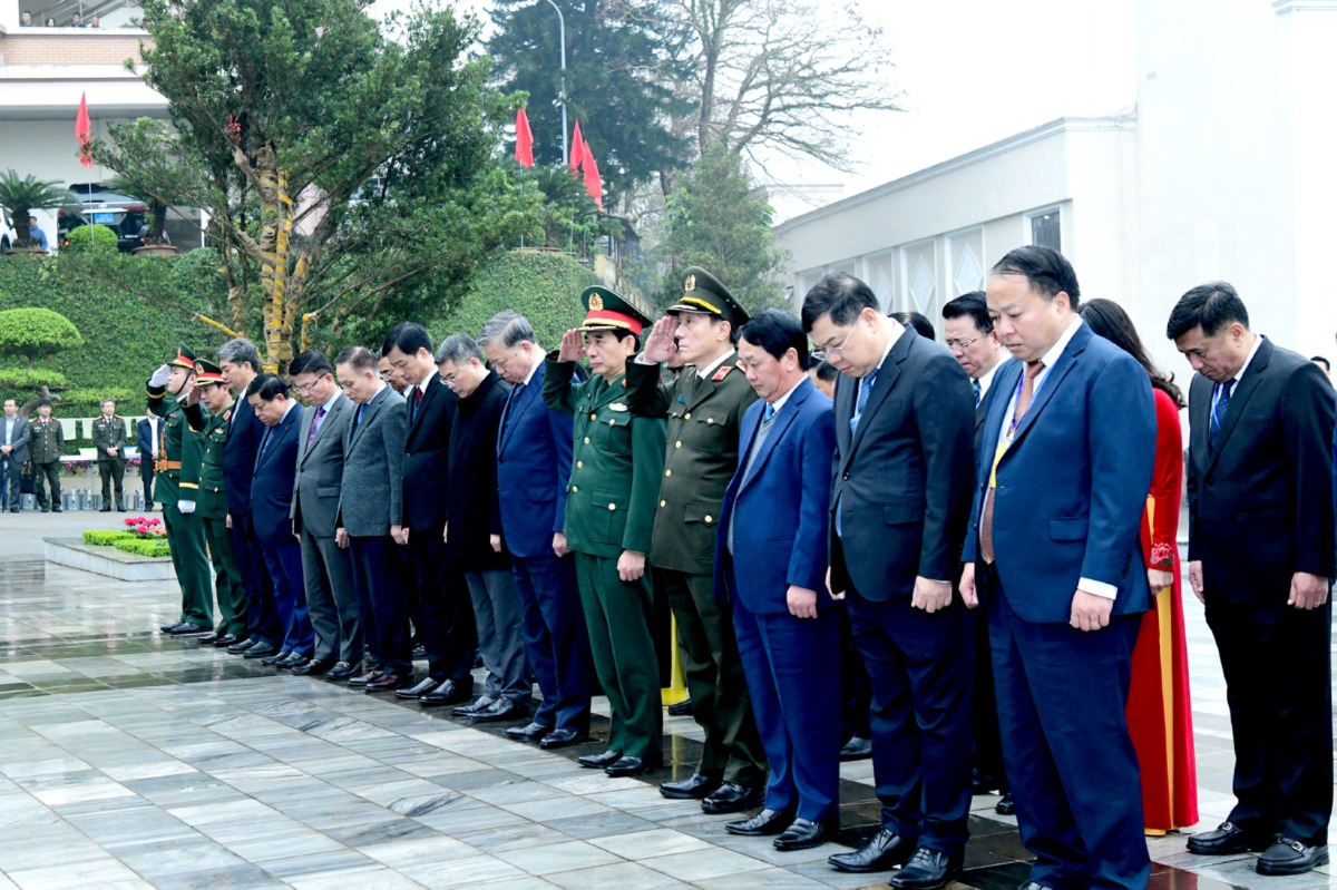 Tiếp tục chương trình công tác tại tỉnh Hà Giang, nhân kỷ niệm 95 năm Ngày thành lập Đảng Cộng sản Việt Nam (3/2/1930 – 3/2/2025), sáng ngày 6/2, đồng chí Tô Lâm, Tổng Bí thư Ban Chấp hành Trung ương Đảng Cộng sản Việt Nam cùng Đoàn công tác Trung ương và các đồng chí trong Ban Thường vụ Tỉnh ủy đã trang trọng tổ chức lễ dâng hoa tưởng nhớ Chủ tịch Hồ Chí Minh trước Tượng đài của Người trong khuôn viên trụ sở Tỉnh ủy Hà Giang.