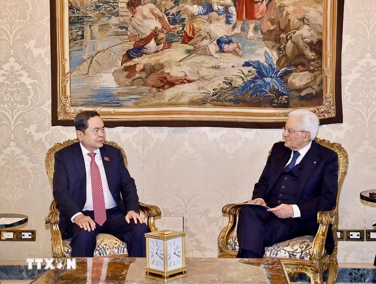 Chủ tịch Quốc hội Trần Thanh Mẫn hội kiến Tổng thống Italia Sergio Mattarella. Ảnh: TTXVN