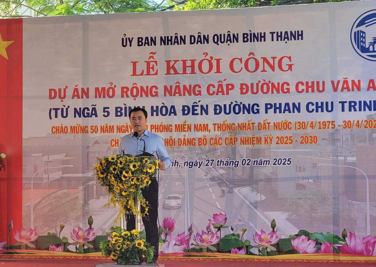 Sáng 27/2, UBND quận Bình Thạnh, TP Hồ Chí Minh tổ chức lễ khởi công dự án nâng cấp, mở rộng đường Chu Văn An, đoạn từ Ngã 5 Bình Hòa đến đường Phan Chu Trinh. Dự án này có tổng mức đầu tư hơn 1.067 tỷ đồng.