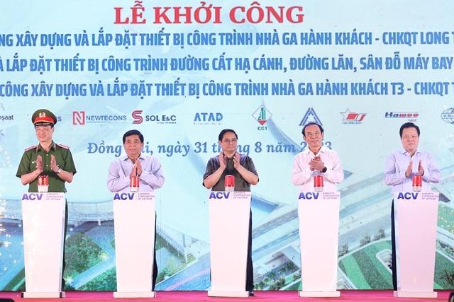 Thủ tướng Phạm Minh Chính cùng lãnh đạo các bộ, ngành, địa phương bấm nút khởi công đồng loạt 3 gói thầu quan trọng với tổng mức đầu tư khoảng 53.000 tỷ đồng của dự án Cảng hàng không quốc tế Long Thành và dự án xây dựng nhà ga hành khách T3 Tân Sơn Nhất