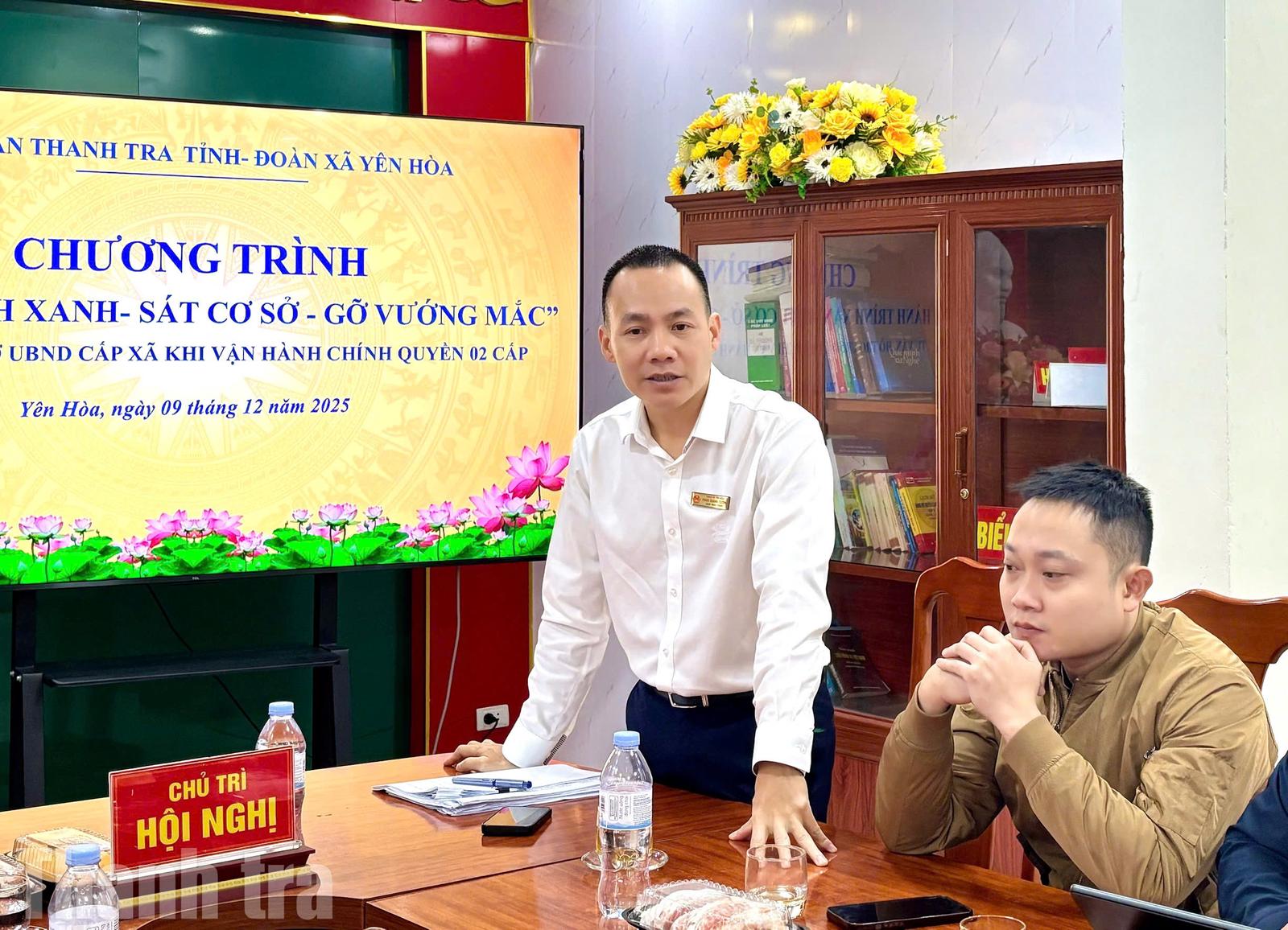 Trao đổi về những khó khăn trong thời gian đầu vận hành vô hình mới, đại diện lãnh đạo UBND xã Yên Hòa, ông Phan Quang Cương - Phó Bí thư Đảng ủy, Chủ tịch UBND xã chia sẻ: Việc xác định nguồn gốc đất gặp nhiều vướng mắc do thiếu hồ sơ và nhân sự cũ; công tác tiếp công dân lúng túng vì không xác định được thẩm quyền giải quyết các tranh chấp dân sự, nội bộ; kinh phí hoạt động văn hóa thiếu định mức hướng dẫn… Với chương trình “Hành trình xanh – sát cơ sở - gỡ vướng mắc” của Chi đoàn Thanh tra tỉnh được triển khai lần này đã giúp đỡ địa phương hoàn thành tốt nhiệm vụ mà cấp trên giao, từng bước tháo gỡ khó khăn, giúp chính quyền địa phương hoạt động có hiệu quả trong mô hình mới.