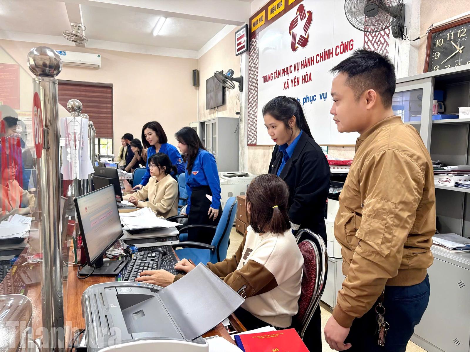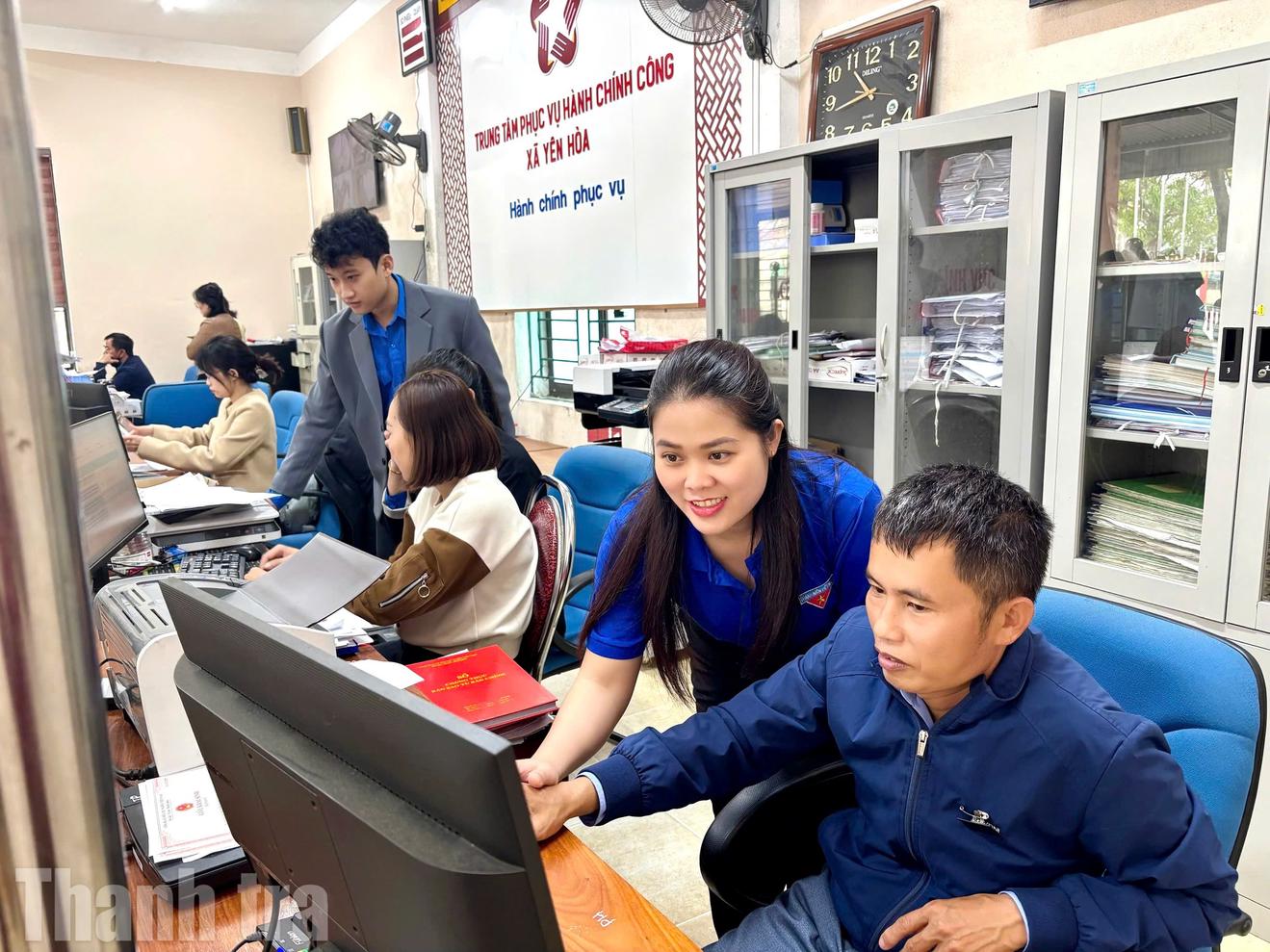 Thanh niên Chi đoàn Thanh tra tỉnh trực tiếp hướng dẫn cán bộ xã giải quyết thủ tục hành chính.